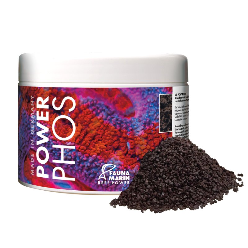Fauna Marin Power Phos to adsorber na bazie wodorotlenku żelaza, który bezpiecznie usuwa krzemiany i fosforany z akwarium. Zanieczyszczenia są wiązane z powierzchnią Power Phos i nie zostaną ponownie uwolnione. PowerPhos może utrzymać bardzo niskie stężenie składników odżywczych w zbiorniku. Niechciany wzrost glonów zostanie zatrzymany, a koralowce pokażą swoje naturalne kolory.