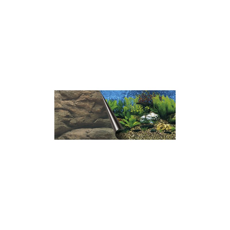 Dwustronne tło fotograficzne do akwarium 80x40 cm. Wysokiej jakości nadruk z motywem morskiej toni oraz naturalnych skał. Maskuje sprzęt, nadaje efekt 3D i podkreśla barwy ryb.