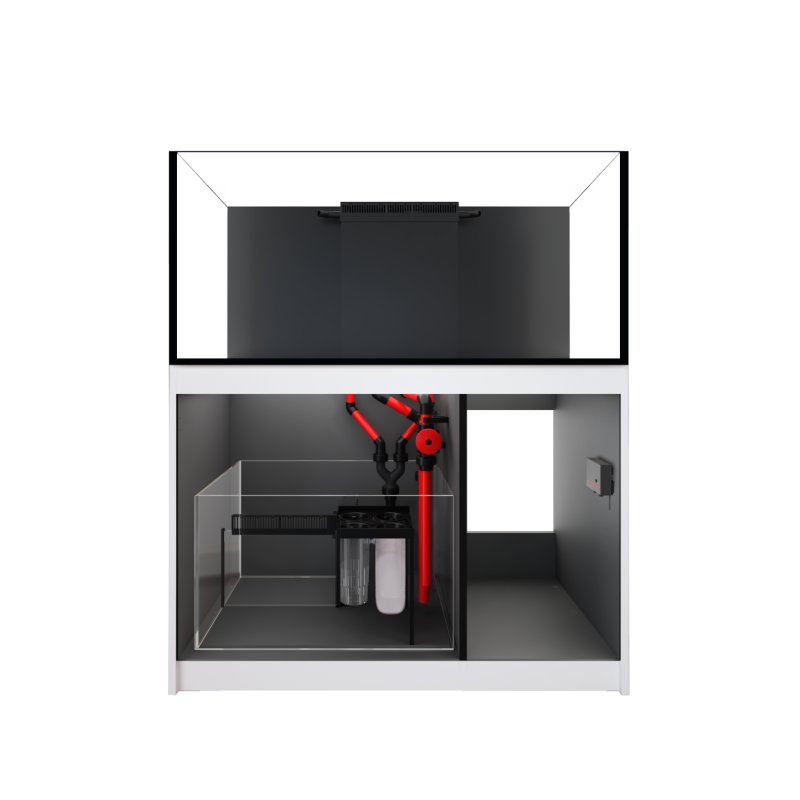 Komora filtracyjna z skarpetami pozwala i zapobiega zatykaniu się pompy. Komora jest łatwa w edycji i standardową skarpetę filtracyjną można zastąpić Red Sea ReefMat, który jeszcze dokładniej zadba o klarowność Twojej wody w zbiorniku. Woda po filtracji wstępnej jest transportowana do komory odpieniacza gdzie jest utrzymywany stały poziom wody tak aby praca odpieniacza była zawsze wykorzystana w stu procentach. Komora bubble stop pozwala na wyłapanie pojedynczych pęcherzyków powietrza. Tak przefiltrowana woda trafia do komory z pompą obiegową (nie załączona w zestawie) która ponownie wypompuje wodę do zbiornika głównego.