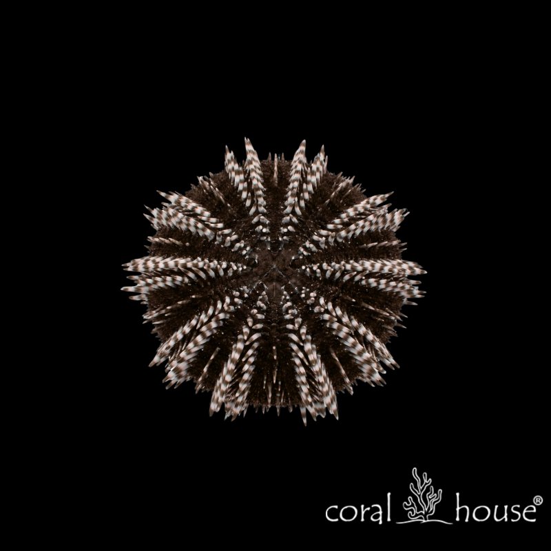 Mespila globulus to jeden z najbardziej lubianych jeżowców w akwarystyce, często nazywany "Tuxedo Urchin" (Jeżowiec we fraku) lub "Globusem". Przydomek ten zawdzięcza swojemu wyjątkowemu wyglądowi: pomiędzy rzędami krótkich, brązowo-czerwonych kolców znajdują się szerokie, aksamitne strefy w kolorze granatowym lub czarnym, co przypomina pasy na eleganckim garniturze. Dorasta do około 6-7 cm średnicy. Jest to gatunek słynący z unikalnego zachowania obronnego – instynktownie chwyta kawałki skałek, puste muszle, a nawet szczepki koralowców i nosi je na sobie jako kamuflaż, co często wygląda komicznie i uroczo.