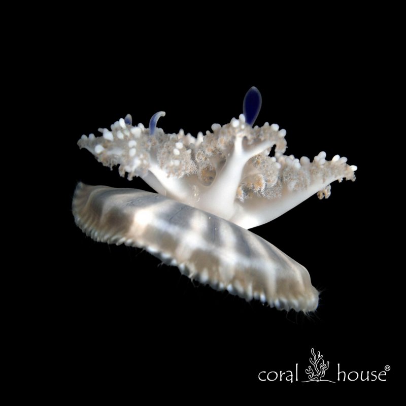 To meduza dla osób, które cenią sobie spokój i fascynującą biologię. Obserwacja miarowego pulsowania Cassiopei na dnie akwarium działa niezwykle relaksująco. Jest to również doskonały wybór na pierwszą meduzę – wybacza drobne wahania parametrów i nie wymaga skomplikowanego ustawiania cyrkulacji wody. Wszystkie nasze osobniki pochodzą z etycznych akwakultur Ocean’s Clouds, co gwarantuje ich zdrowie i witalność.