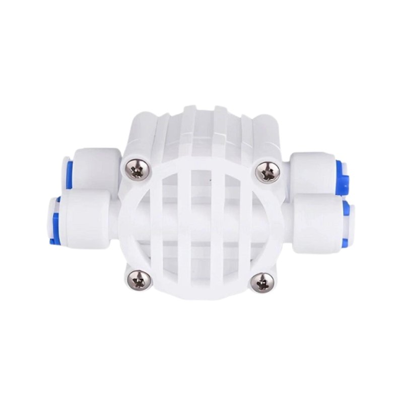 Automatyczny zawór czterodrożny (kostka) do systemów odwróconej osmozy. Zamyka dopływ wody po napełnieniu zbiornika. Wyposażony w szybkozłączki 1/4" JG dla łatwego montażu.