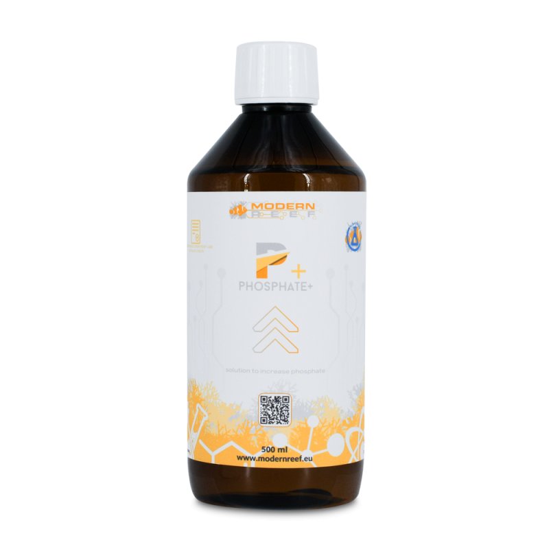 Wysokiej czystości roztwór fosforu Modern Reef P+. Pozwala na bezpieczne podniesienie poziomu PO4 w akwarium morskim. Zapobiega limitacji składników odżywczych i wspiera metabolizm koralowców.