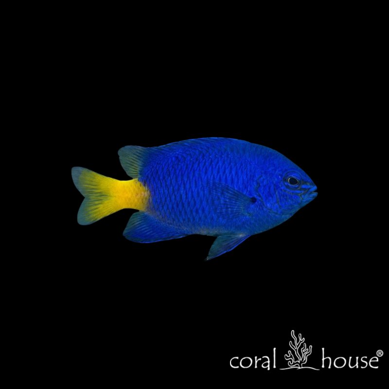 Chrysiptera parasema, powszechnie znana jako garbik żółtoogonowy lub "Yellowtail Blue Damselfish", to absolutna klasyka akwarystyki morskiej. Ryba ta zachwyca niezwykle intensywnym, głębokim odcieniem granatu i fioletu, który pokrywa niemal całe jej ciało. Jedynym kontrastowym elementem jest jaskrawożółta płetwa ogonowa. Często bywa mylona z *Chrysiptera hemicyanea*, jednak w przeciwieństwie do niej, *C. parasema* ma żółty wyłącznie ogon, a nie brzuch. Jest to ryba niewielka, dorastająca do około 7 centymetrów, co w połączeniu z jej jaskrawymi barwami sprawia, że wygląda jak żywy klejnot przemykający między skałami.