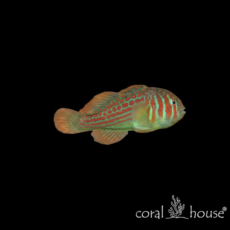 Gobiodon histrio, często spotykana pod nazwą babka zielona lub "Green Clown Goby", to niewielka ryba o niezwykle ciekawym ubarwieniu, która doskonale wpisuje się w obsadę małych akwariów morskich. Jej ciało ma zazwyczaj kolor szmaragdowo-zielony lub oliwkowy, który jest upstrzony nieregularnymi, czerwonawymi lub rdzawymi pasami i plamkami, szczególnie widocznymi w okolicach głowy. Podobnie jak inne gobiodony, jest to ryba o krępej budowie, dorastająca do około 6 centymetrów długości. Posiada specyficzny mechanizm obronny – jej skóra wydziela gęsty, gorzki śluz zawierający toksyny, co skutecznie zniechęca większość drapieżników do traktowania jej jako posiłek.