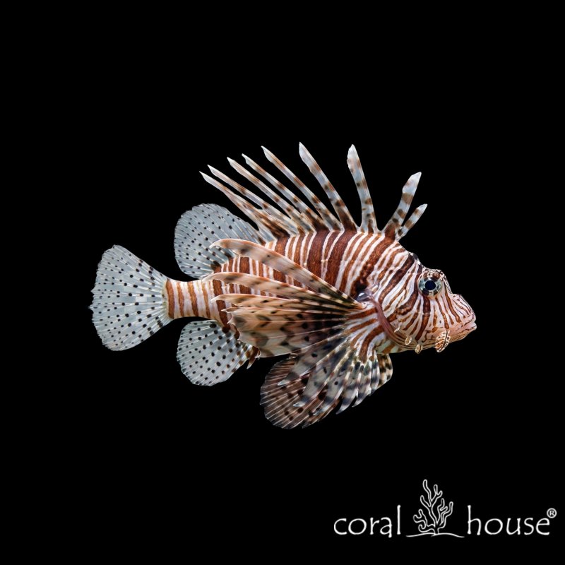 Pterois volitans, powszechnie nazywana skrzydlicą pstrą lub z angielskiego "Lionfish" (lwia ryba), to niekwestionowana królowa drapieżników w akwarystyce morskiej. Jej wygląd jest absolutnie niepowtarzalny: ciało pokryte jest pionowymi pasami w kolorach bieli, czerwieni, brązu i czerni, co ostrzega otoczenie o jej niebezpieczeństwie. Największe wrażenie robią jednak jej ogromne, wachlarzowate płetwy piersiowe, przypominające skrzydła lub lwią grzywę. Skrzydlica pływa z niezwykłą gracją i dostojeństwem, powoli przemierzając toń wodną. Jest to ryba duża, dorastająca w akwarium do około 30-38 centymetrów, która staje się centralnym punktem każdego zbiornika.