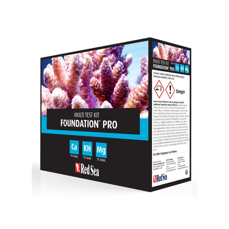 Zestaw testowy FOUNDATION PRO Multi firmy Red Sea zawiera precyzyjne testy miareczkowe do precyzyjnego pomiaru wapnia, magnezu i zasadowości (KH), które są podstawowymi składnikami szkieletów koralowców. Wszystkie te pierwiastki muszą występować w zrównoważonych proporcjach dla zrównoważonego, prawidłowego zdrowia i wzrostu koralowców.